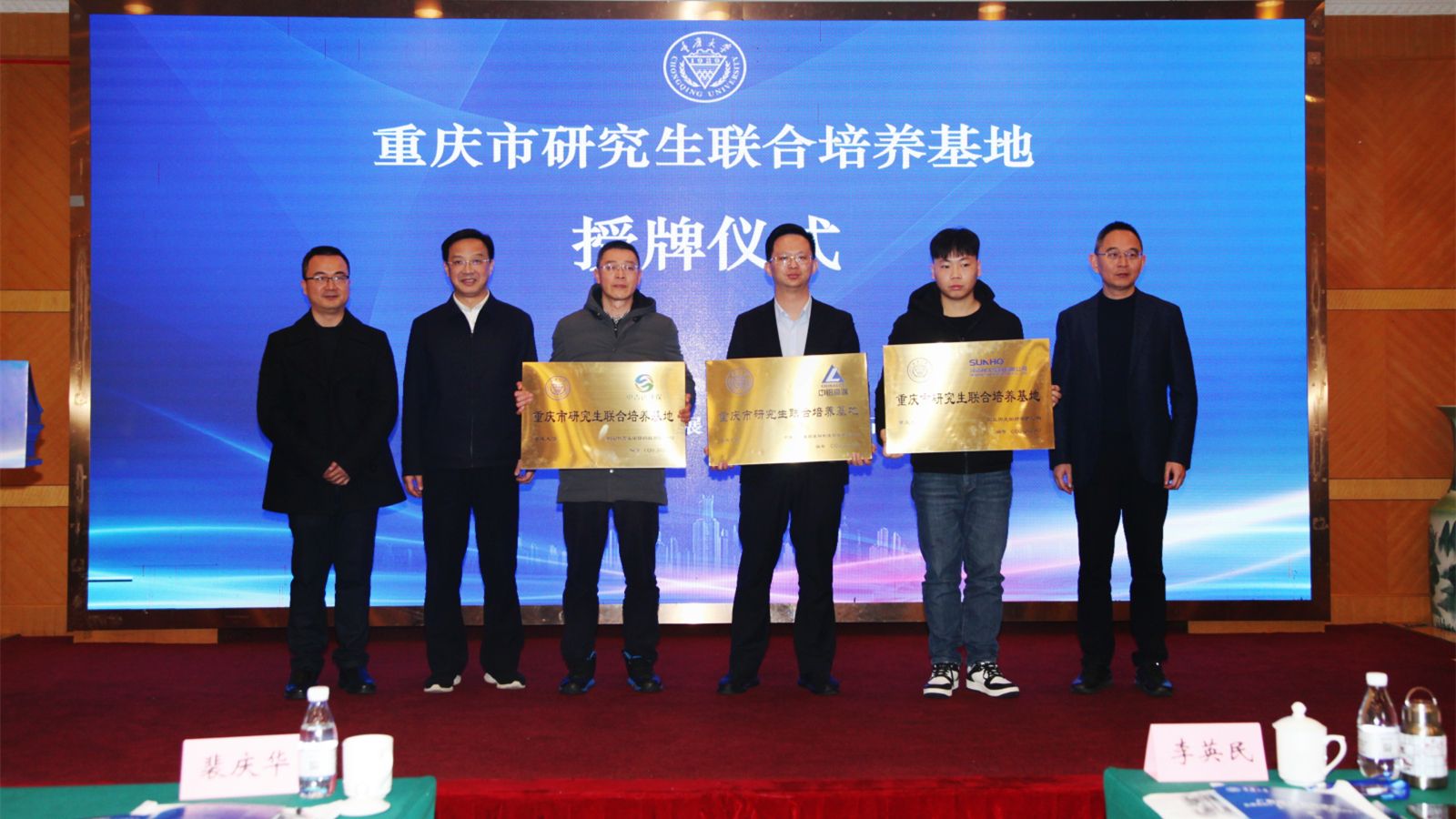 紧接着,进行了中国铝业集团高端制造股份有限公司、商丘阳光铝材有限公司和重庆中吉达环保科技有限公司3个重庆市研究生联合培养基地授牌仪式。重庆九龙现代产业发展集团有限公司总经理裴庆华、西部(重庆)科学城九龙新城园区管委会副主任段影、好博体育国家卓越工程师学院经理李英民上台为重庆市研究生联合培养基地授牌。中国铝业集团高端制造股份有限公司科技创新部副总经理黄鸣东代表重庆市研究生联合培养基地建设单位发言。