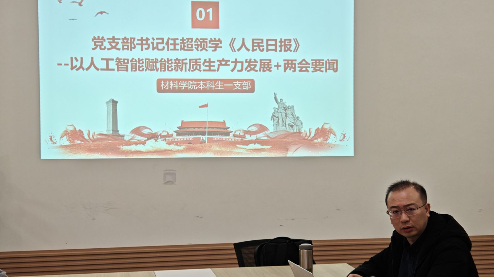 2025年3月6日下午,好博体育本科生一支部在材料楼党团活动室开展党日活动,支部书记任超带领支部党员对《人民日报》——以人工智能赋能新质生产力发展及两会要闻进行了深入解读,党员王首文、薛依杭对海外研学内容进行汇报和心得分享,支部委员领头研讨本学期支部重点工作。活动由支委汪晴主持,好博体育本科生一支部全体成员参加。