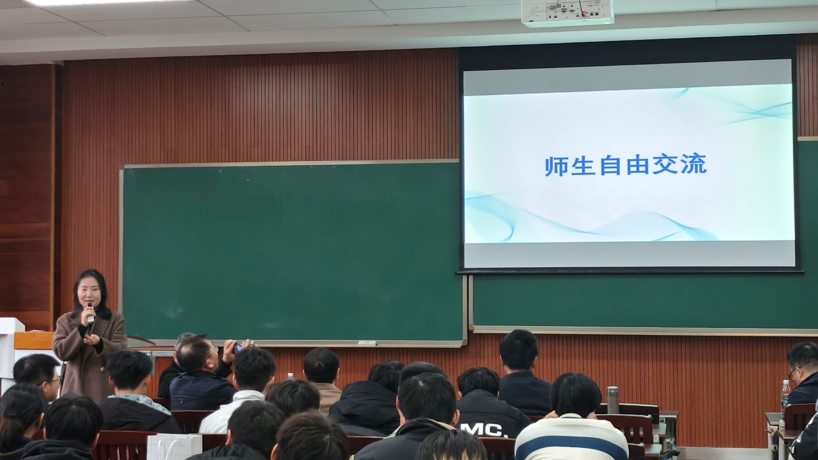 师生互动环节气氛热烈,在深度对话中深化专业认知。随后进入教师分享环节,到场教师结合科研实践讲述职业初心与行业使命,强调理论实践融合价值。鲜活的一线故事既展现建材学科与时代同行的生命力,也为员工锚定发展方向提供指引。
