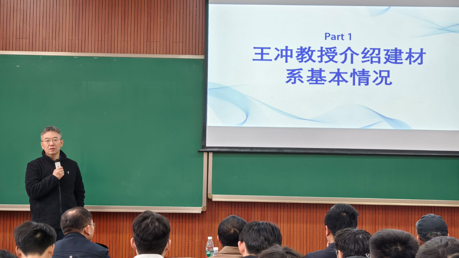 交流会由建材系主任王冲教授主持。活动以"教师前沿学术报告+师生互动研讨"的创新形式展开。王冲首先从专业的历史沿革、学科特色、研究方向、人才培养、团队组成及学术成果等多个方面系统的介绍了建筑材料系的基本情况,并明确了本次交流会的主要目的。