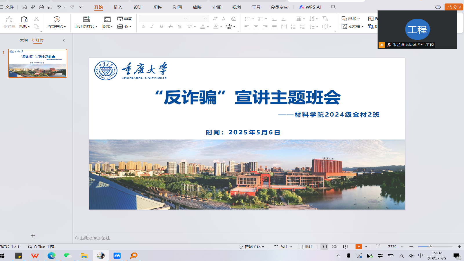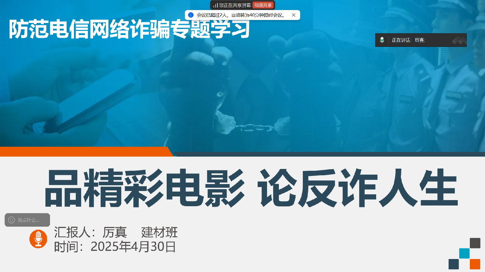 为进一步提升员工网络安全意识,增强防范电信诈骗能力,切实保障员工财产安全,在专职辅导员高洁老师和研究生兼职辅导员雷浩川的统筹布置下,学院2024级研究生以班级为单位组织开展了以"防范网络电信诈骗"为主题的专题学习活动。各班通过班会的形式让反诈知识入脑入心,为青春成长保驾护航。