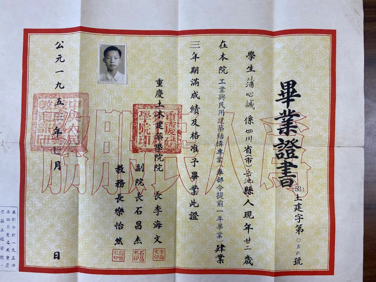在布满中文、英文和俄文资料的书房里,团队系统梳理了蒲教授留存的珍贵学术资料,整理出的四大类核心文献包括:1950年以来上百册国内外水泥混凝土领域的相关书籍、蒲教授的1953年重庆土木建筑学院(重庆建筑工程学院的最初名称)大学毕业证书、四川省/重庆市科学技术奖获奖证书、各类手绘图纸和中英文专著手稿等核心文献。通过彭小芹教授对建材系发展历史的讲述,详细展现了蒲教授在建材系博士点申报过程中的艰辛付出,以及从设计规划到落地建成混凝土工艺实验室耗费的心血。这些尘封数十载的原始档案,生动再现了建材学科筚路蓝缕的发展历程,让年轻党员触摸到第一代建材人“将论文写在混凝土上”的精神基因。