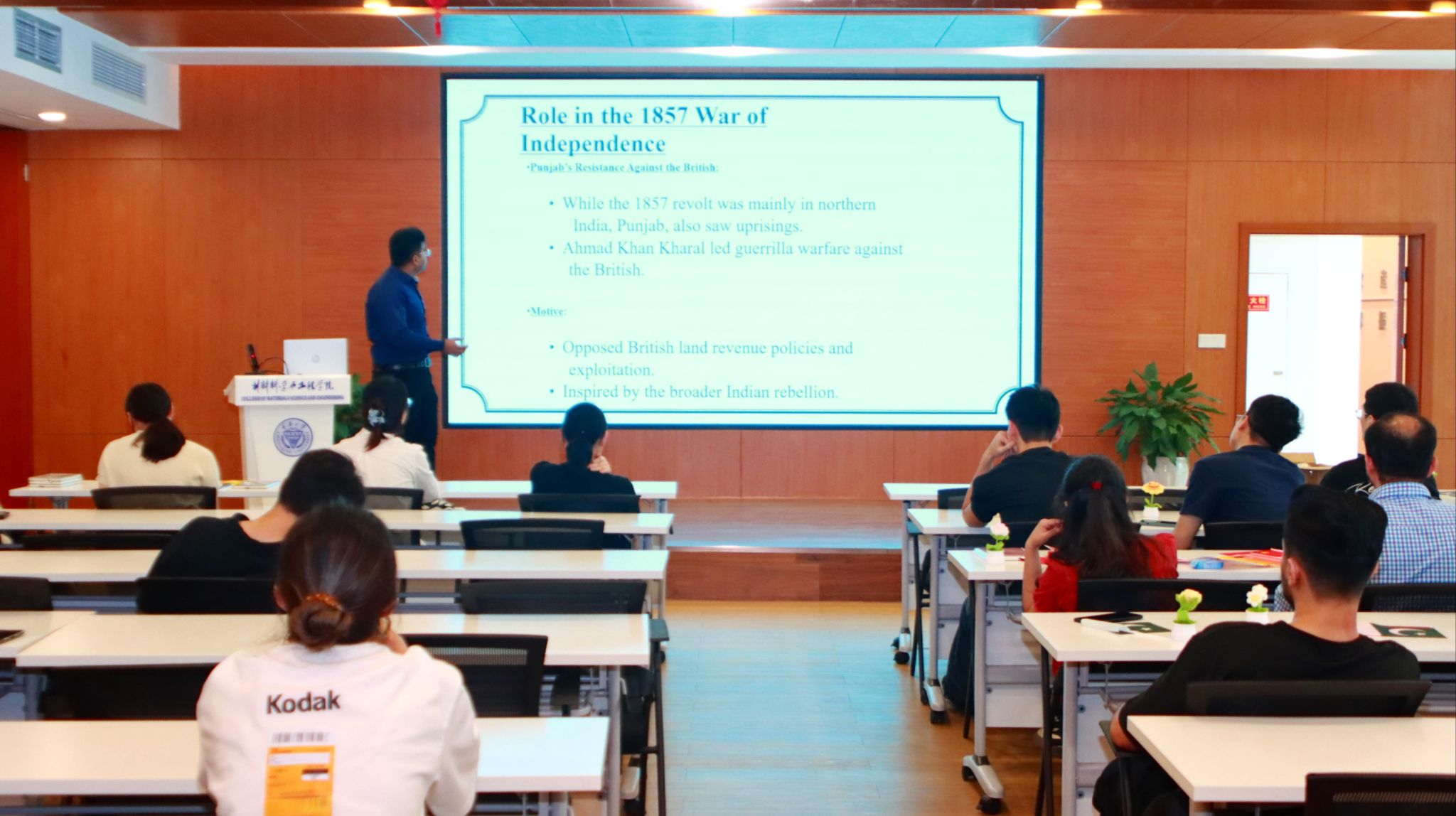 活动后半程转向历史与现实的深度联结。在“巴基斯坦英雄介绍”环节,ASAD ULLAH(中文名:山龙)通过讲述1857年抗英起义领袖Rai Ahmad Khan Kharal的事迹,展现了巴基斯坦人民反抗英国殖民压迫的历史记忆,深化了中外学子对“民族英雄精神”的共鸣。