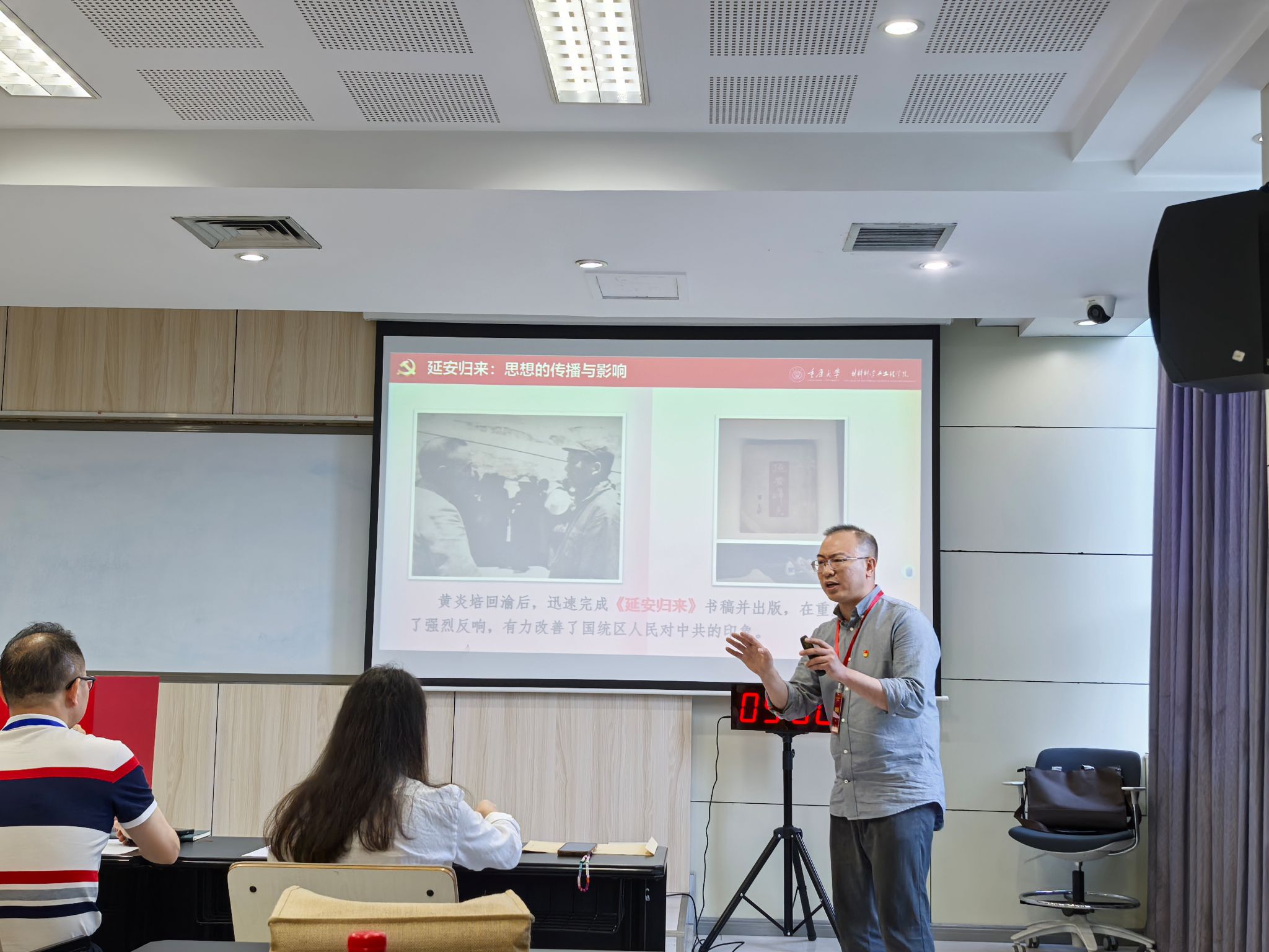 在理论宣讲环节,孟毅以“锻造大国重器:以科研践行党的教育与强国战略”为题,从材料对科技强国的基础作用和党建引领下的科技创新等维度,阐述了新时代新征程材料人的使命担当。