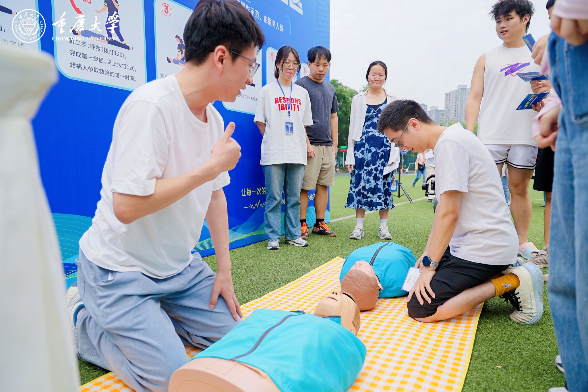 应急救援演练环节紧张有序。面对模拟的“氢气泄漏”险情,应急小组迅速响应——从泄露源排查、环境浓度监测到紧急关阀、通风稀释,处置流程规范高效;在医疗救护区,专业人员手把手传授“心肺复苏”黄金四分钟急救术,师生们认真练习胸外按压节奏与人工呼吸要点;看似简单的“创口包扎”练习,也严格遵循无菌操作与止血要领。每一次按压、每一圈绷带,都是守护生命的坚实技能储备。