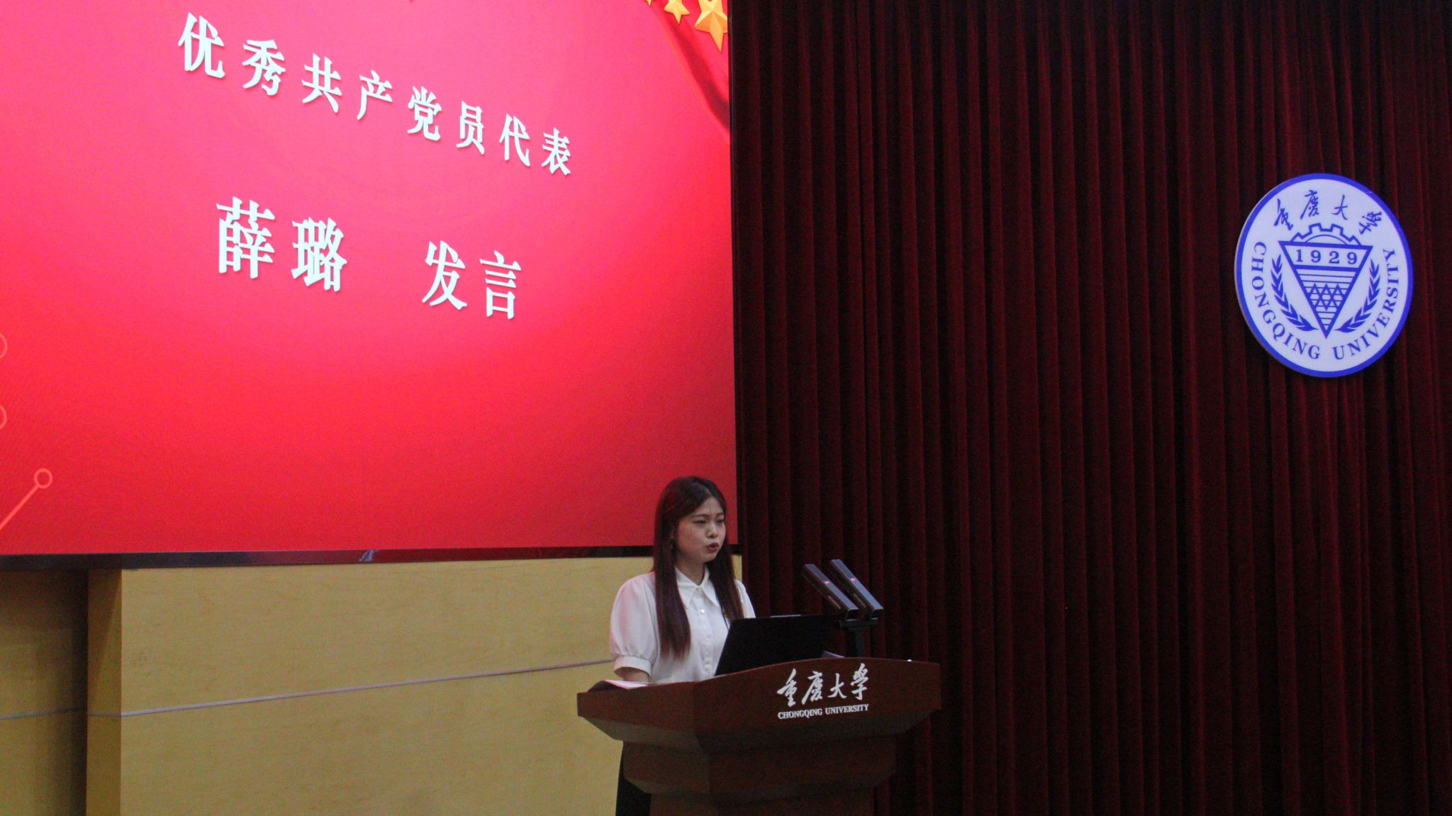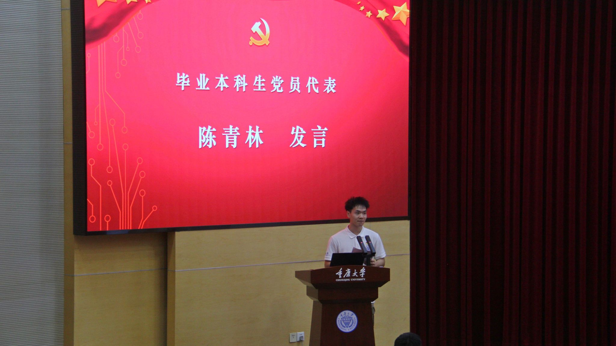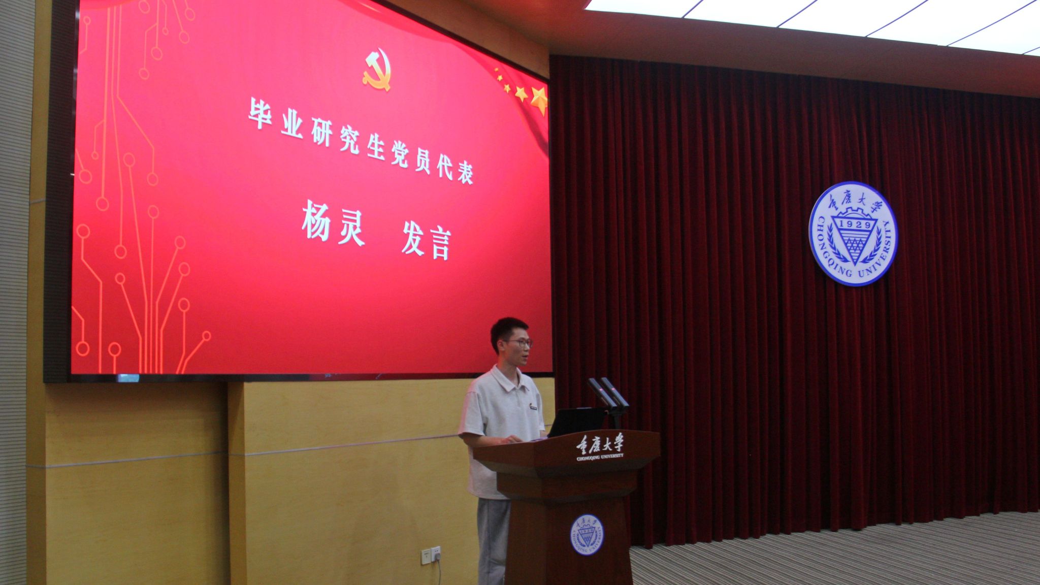 研究生杨灵、本科生陈青林代表毕业生党员发言。