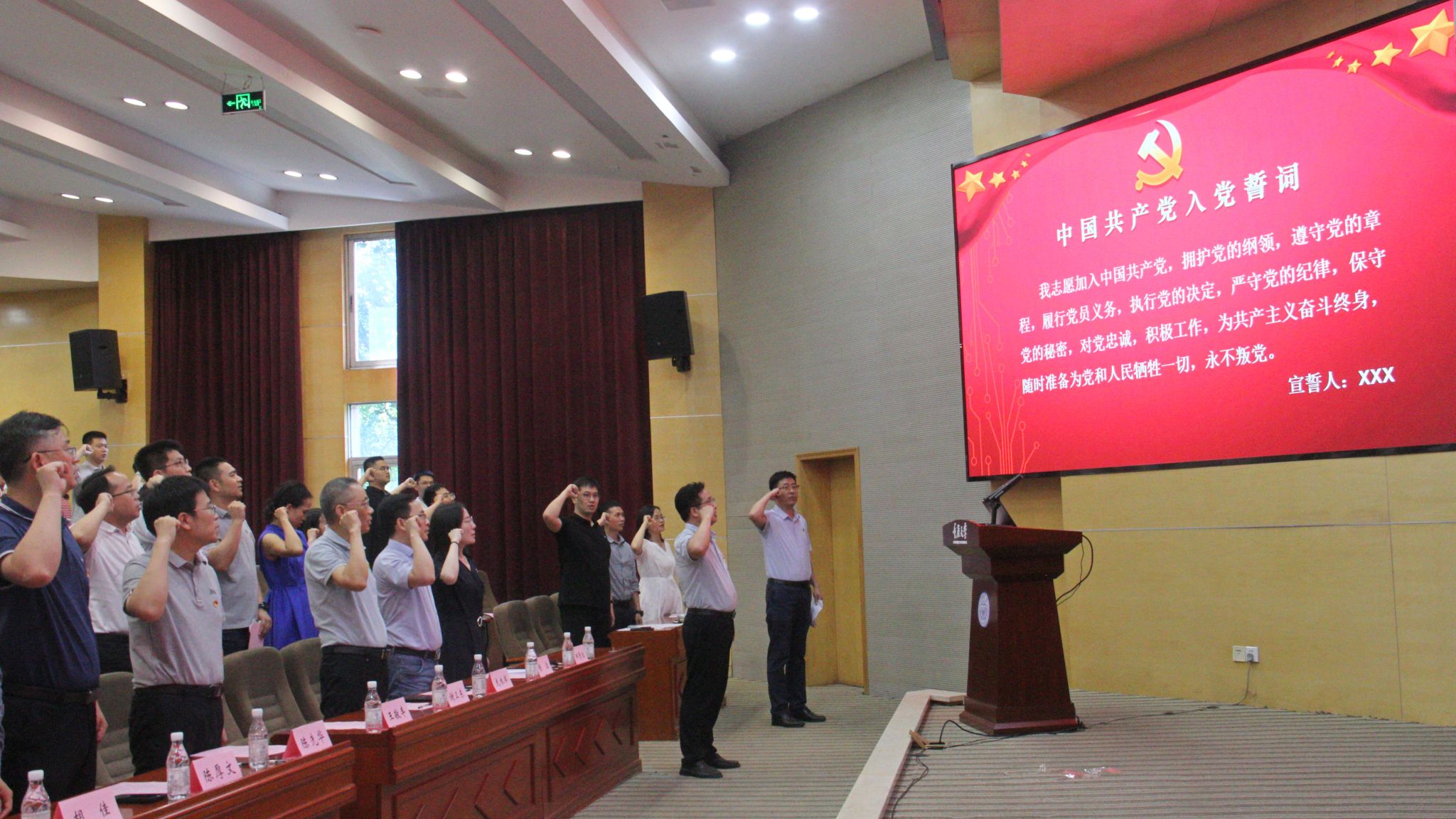 会议进行了新党员集中宣誓暨老党员重温入党誓词环节。