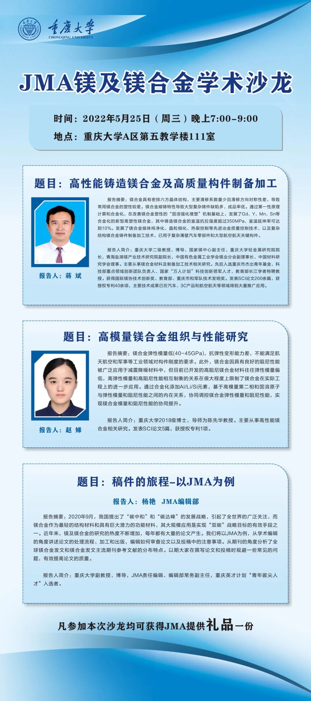 报告人简介:好博体育二级教授,博导,国家镁中心副主任、好博体育轻金属研究院经理、青海盐湖镁产业技术研究院副经理,中国有色金属工业学会镁业分会副理事长、中国材料研究学会理事。主要从事镁合金材料及制备加工技术相关研究。先后入选重庆市杰出青年基金、科技部重点领域创新团队负责人、国家“万人计划”科技创新领军人才、教育部长江学者特聘教授。获得国际镁协技术创新奖、教育部、重庆市和军队技术发明奖。发表SCI论文200余篇,获授权专利40余项,主要技术成果已在汽车、3C产品和航空航天等领域得到大量推广应用。