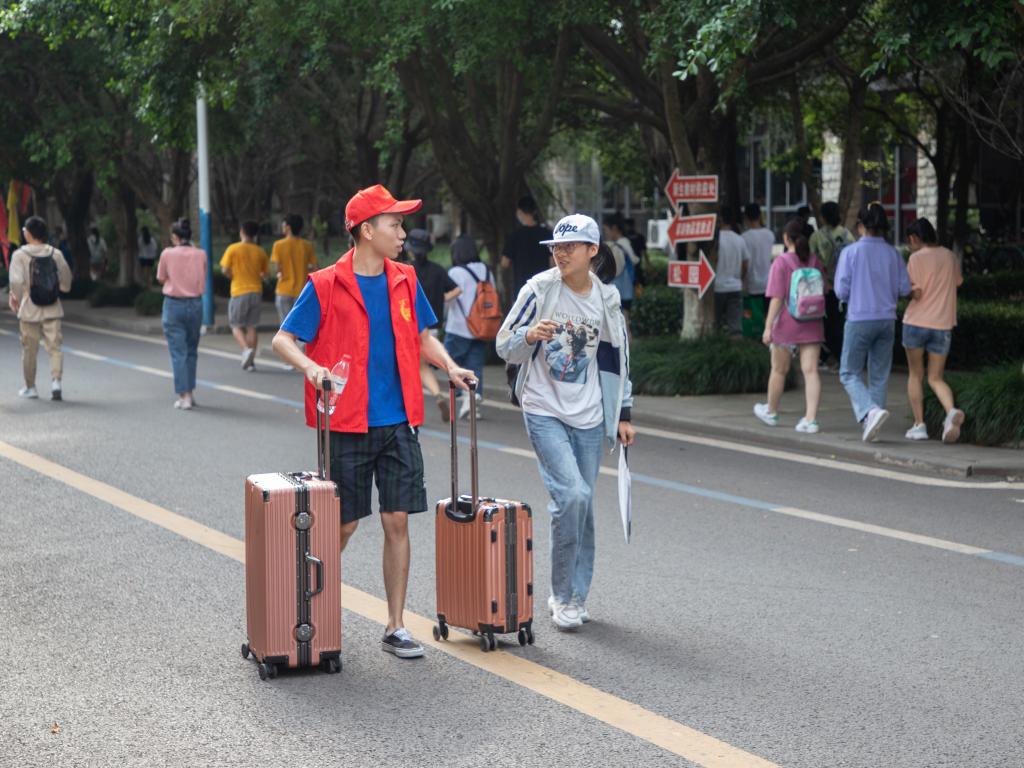 迎新期间,头戴小红帽的志愿者和好博体育工作人员都热心地为入学的新生提供帮助。材料2班的新生马子棋表示,从火车站出站到前往学院迎新棚,再到入住寝室,一路上有志愿者帮忙提着行李带路,这让他感受到了好博体育的温暖。