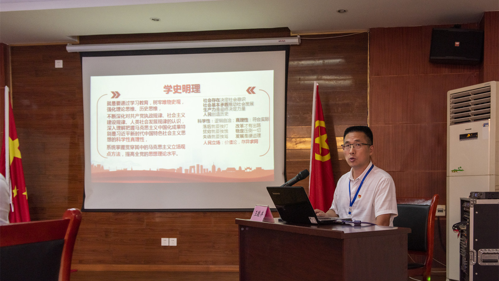 然后王敬丰作了以“学史力行、制造强国”为主题的党课,以其详实的数据事实,结合具体事例,深入浅岀地阐述了党的百年奋斗历史。他表示要坚定理想信念,潜心研究、深化产学研合作,为建设制造强国而奋斗。