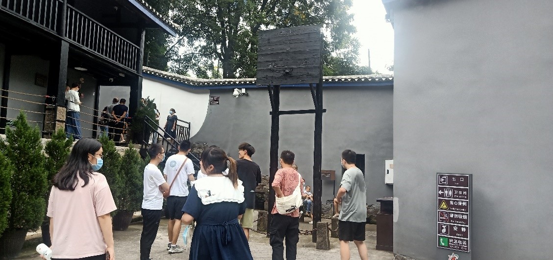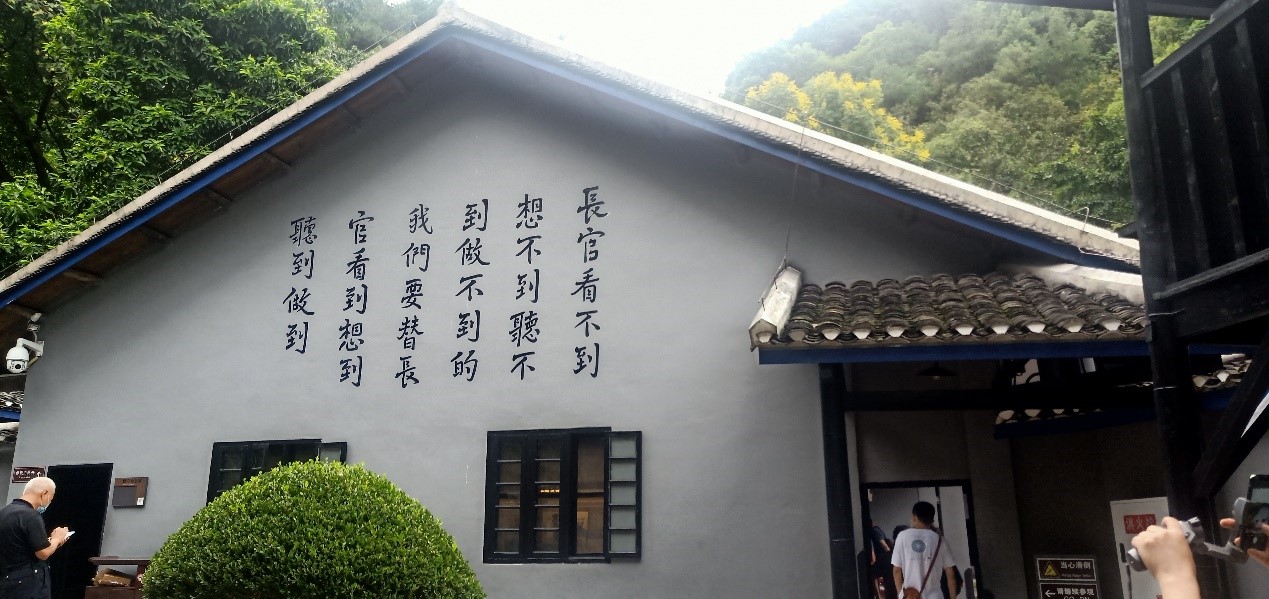 首先,支部各位同志前往白公馆监狱旧址参观。白公馆是一处使后人缅怀英烈的革命遗迹,和渣滓洞一并被称作“两口活棺材”。抗日爱国将领黄显声、爱国人士廖承志、“政治犯”黄以声、许晓轩等都曾被关押在白公馆,并且饱受迫害。1949年11月27日,军统特务对关押在此的革命者进行大屠杀,几百人遇害,也被称作重庆“11•27”大屠杀。在白公馆的烈士遗书——红岩“狱中八条”中写道“防止领导成员腐化、加强党内教育和实际斗争的锻炼、切勿轻视敌人、严格进行整党整风”等,在当下仍具有非常重要的指导意义。作为共产党员,应做到牢记历史,追求正义,时刻反思,才能对得起这些曾经为革命事业英勇牺牲的先烈们。