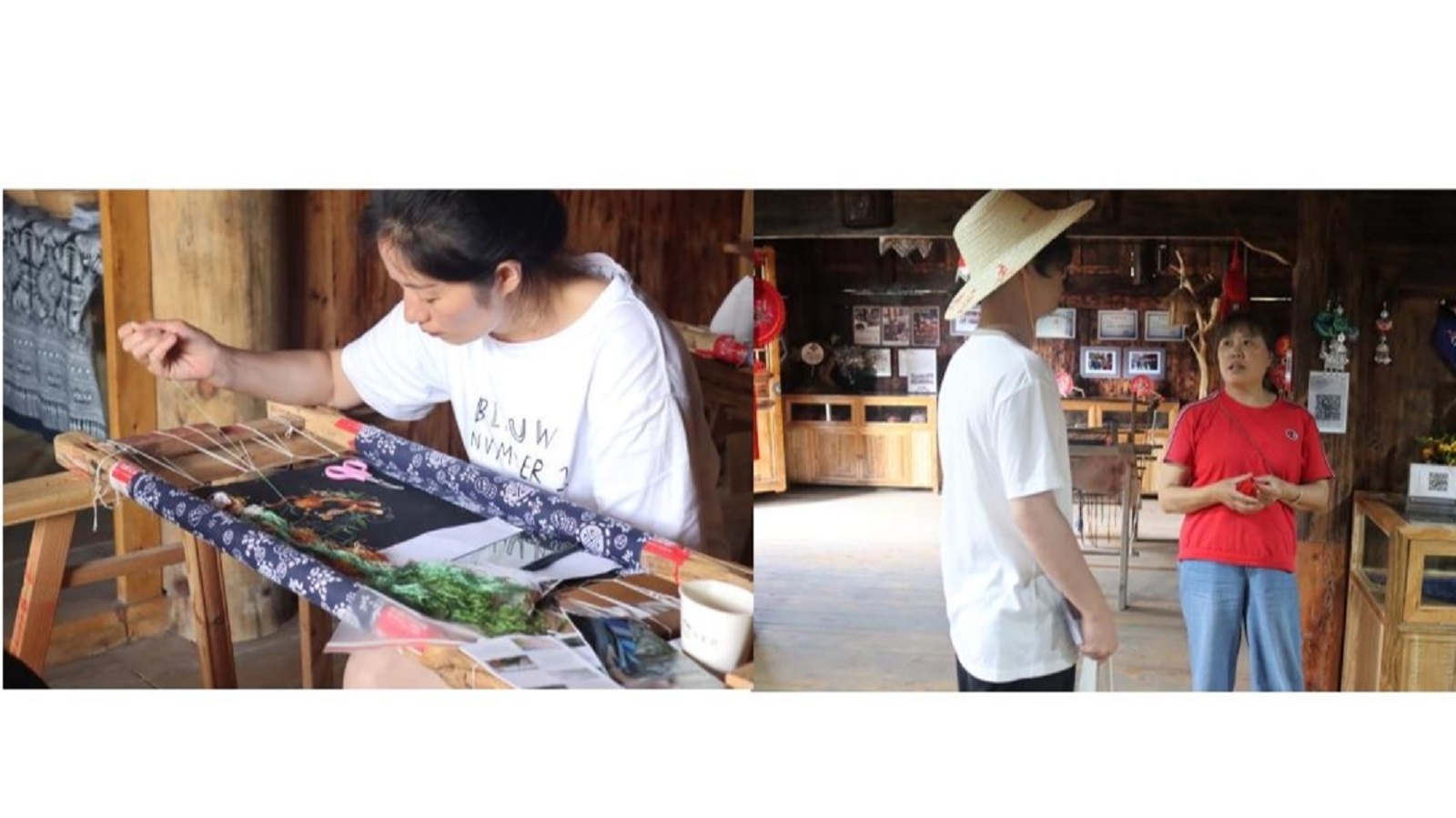 实践团调研实践的最后一站去到了花田乡的苗绣作坊。文化遗产是见证一个民族历史的重要产物,秉承着保护和推广苗绣的目的,成员们去到了苗绣作坊,深入了解了苗绣的制作。初入绣房,一幅幅精美的苗绣作品让大家目不暇接。色彩交错,针脚细密,一针一线都体现着苗绣这一古老文明独特的吸引力。经此一行,成员们纷纷表示文化的繁衍传播有赖于文化自身的丰富,更离不开文化传承人的自信与坚守,老员工应该尽自己所能,让苗绣走出山村。