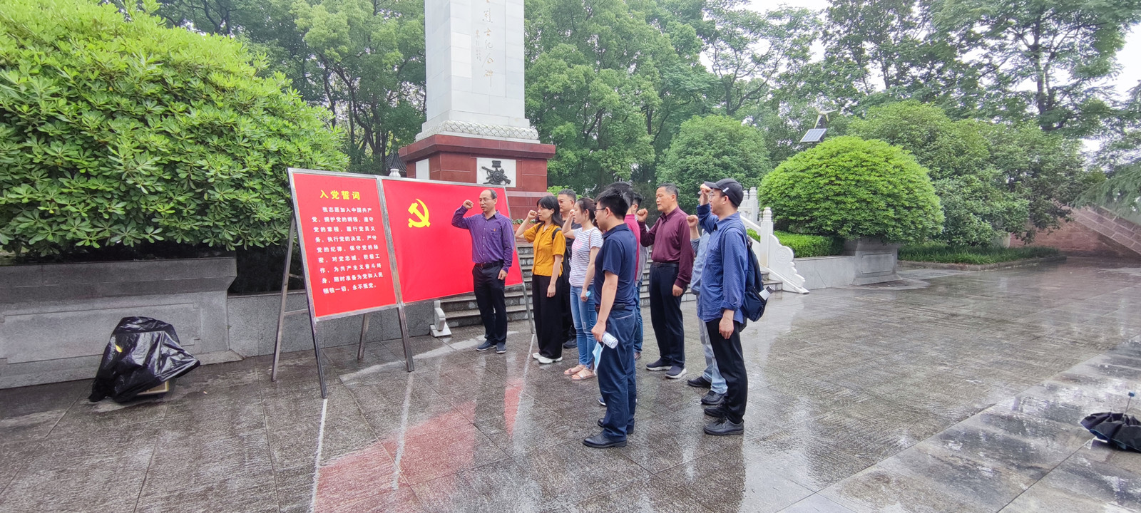 在邱少云烈士事迹陈列馆前,教师党员们还瞻仰了邱少云烈士纪念碑,并在邱少云烈士纪念碑前共同重温了入党誓词,进一步增强了理想信念。通过本次活动,老师们接受了一次深刻的集体主义和爱国主义精神教育,向革命先烈学习、牢记入党初心、强化责任使命、传承红色基因,为学校发展添砖加瓦,为中华民族伟大复兴贡献力量。