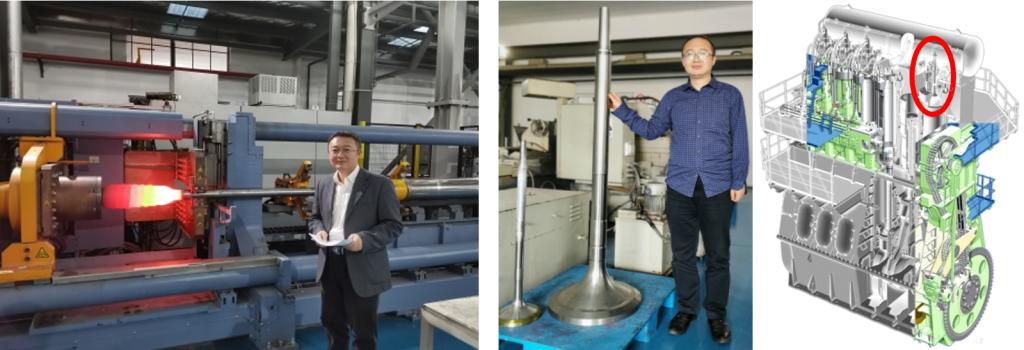 团队支撑建成国内第一家、世界最大电镦能力的二冲程低速机气阀生产线,掌握大规格电镦-锻调控晶粒匀细化的核心技术,研制出的杆径0.06m以上的低速机气阀全部打破国外垄断。