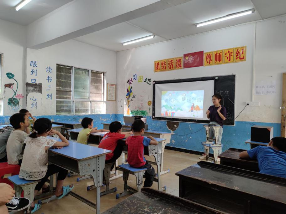 中星小学是私立寄宿学校,位处忠县韩家沟,地处偏远。员工群体主要为留守儿童,其家长长期在外务工,暑期留校员工为长期留守儿童,员工长期在校,与外界缺乏沟通交流。“筑梦工程”支教团到校后从安全卫生、常识科普、科学实验、创意手工等方面为暑期留校员工进行教学。