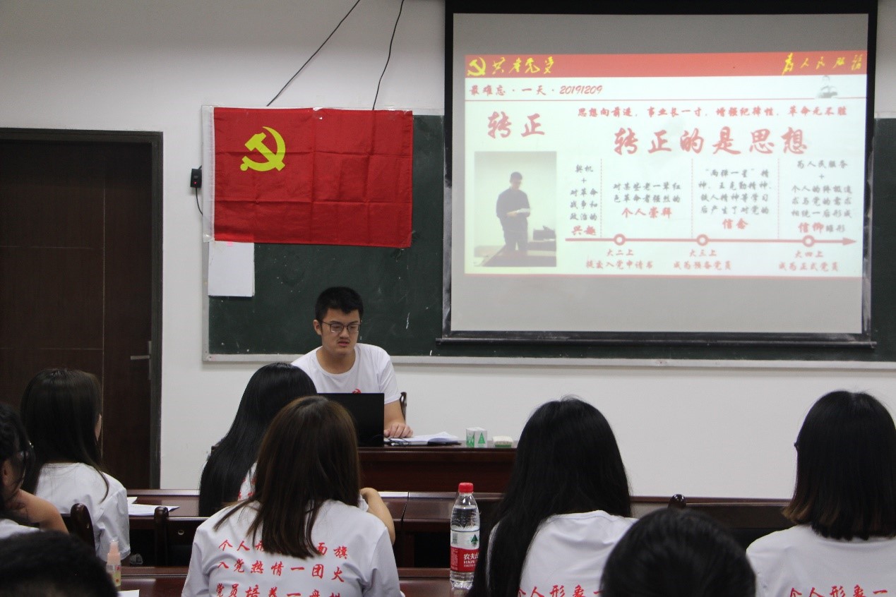 郑小宇同志用她自己独有的大学体验告诉大家“大学就是一个充满选择的过程”。并结合自身选择学习外语、选择加入中国共产党、选择保研这几个重要阶段的选择向大家多方位展示了选择的重要性。她强调正是因为这一个个重要的选择才塑造了现在的我们,成为一名共产党员是自己无悔的选择,自己也将在新的平台,继续以党员身份要求自己,始终坚信“组织上入党一生一次,思想上入党一生一世”。