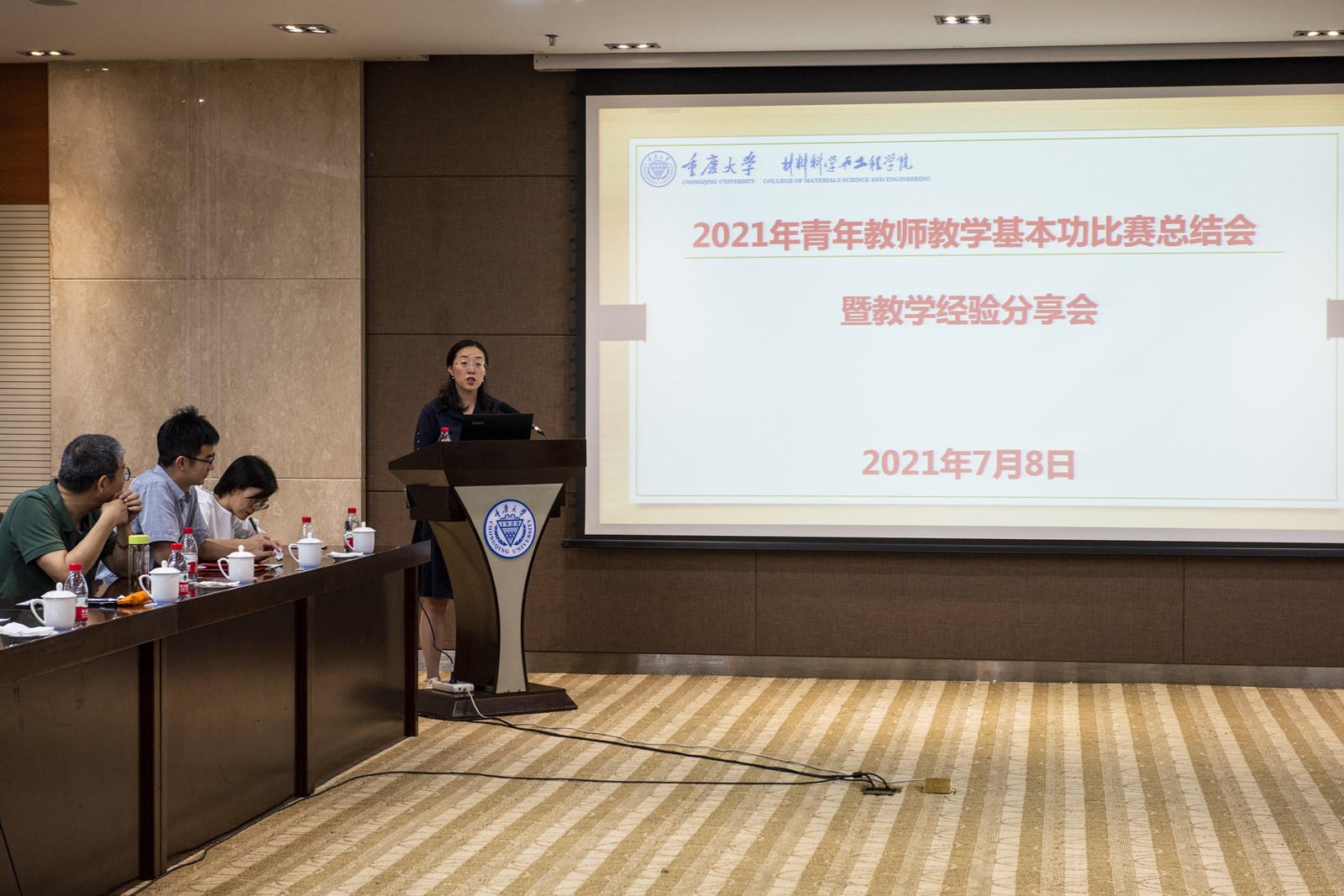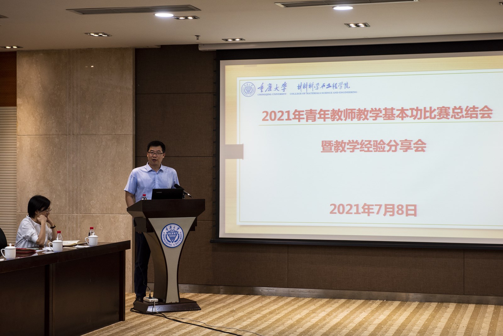 To fully implement Jinping Xi Thought on Socialism with Chinese Characteristics for a New Era and the guiding principles of the 19th National Congress of the CPC, Carry forward the fine teaching style of moral education and teaching, further promote the teaching ability and professional level of young teachers, on the morning of July 9, 2021, College of Materials Science and Engineering organized the Concluding Meeting and Teaching experience Sharing Meeting for 2021 Basic Teaching Skills Competition for Young Teachers in Room 509, main teaching building, Zone A, Chongqing University. Lu Huang, director of the Teaching Development Center, and Xiaoxu Huang, dean of the College of Materials Science and Engineering attended the concluding meeting. School supervisors, department heads, representatives of young teachers and academic administrators attended the meeting. The conference was divided into two stages, the first is the Concluding and Awarding Meeting for Basic Teaching Skills Competition for Young Teachers, the second stage invited Prof Xiaoqin Peng from Building Materials Engineering Department to share teaching experience for young teachers, the meeting was presided over by the deputy dean Zejun Chen who was in charge of teaching.