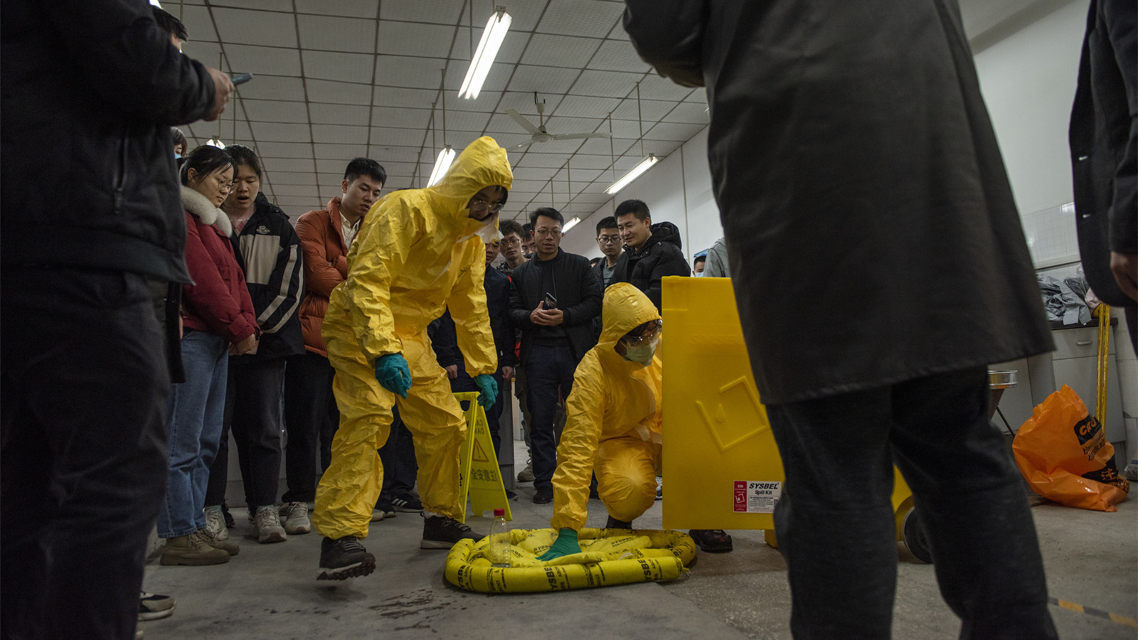 This activity mainly includes correctly dress up personal protective equipment (PPE), emergency drill of dangerous chemical leakage prevention and dispose, emergency drill of flammable toxic laboratory gas leakage dispose, emergency drill of flammable and explosive laboratory gas leakage dispose, emergency drills of response to electric shock, and the exercise of six laboratory staff professional emergency drill program.