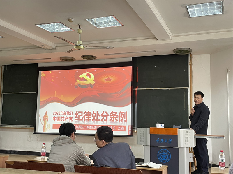 随后,市纪委驻市教委纪检监察组副组长刘鑫同志为全院师生作了以案明纪——《中国共产党纪律处分条例》解读专题报告,以生动的案例为老师们详细解读了《中国共产党纪律处分条例》。