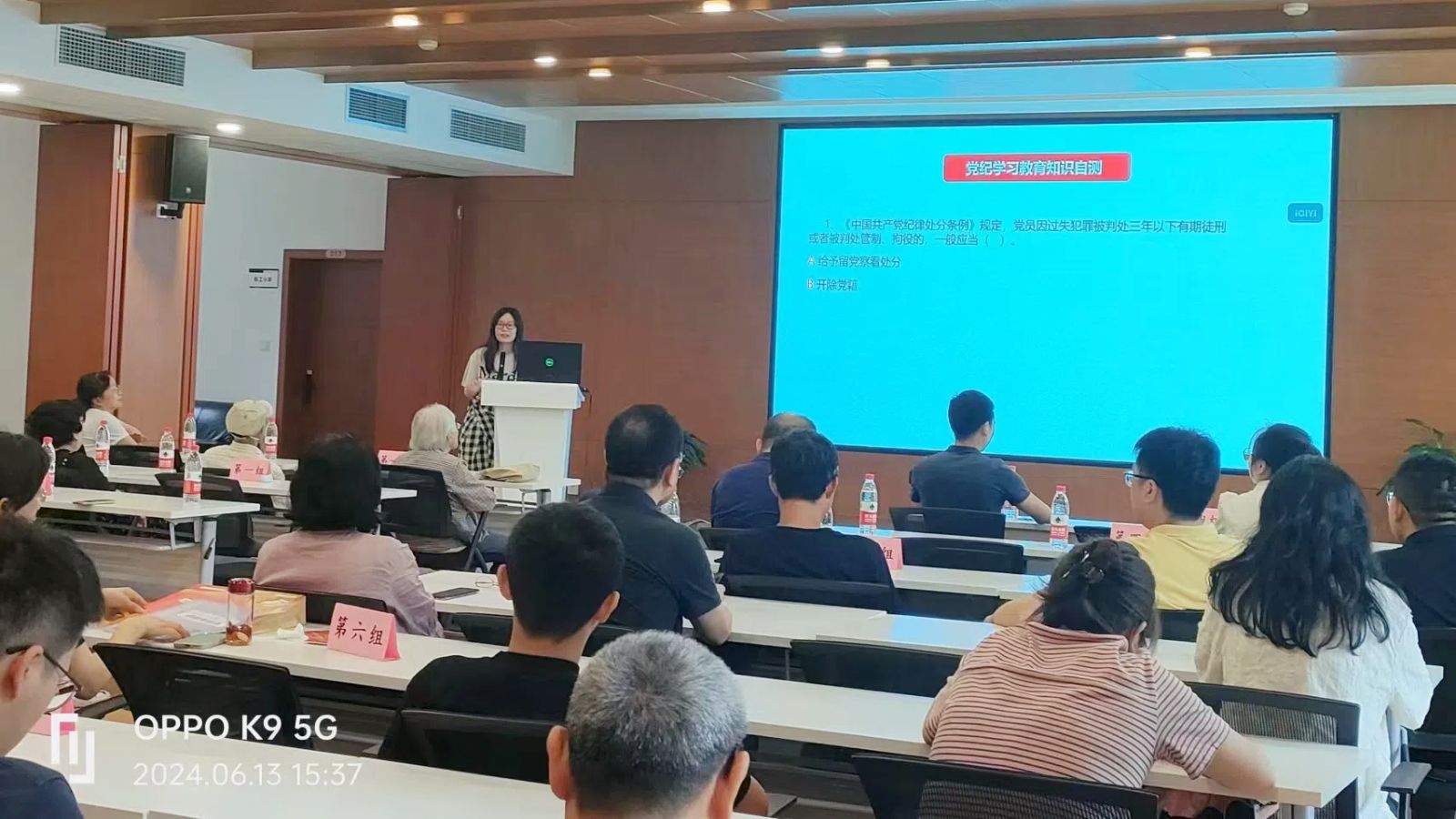 专题学习之后,建材装饰系教工支部书记王荣华主持了《中国共产党纪律处分条例》知识竞答环节。竞赛采用抢答的模式,围绕《中国共产党纪律处分条例》来设置题目,涉及知识面广、趣味性强。党员教师们通过一次次激烈的抢答将比赛推向高潮,赢得台下掌声不断。用知识竞赛巩固学习成果,形成了“以考促学、以学促用”的良好氛围。